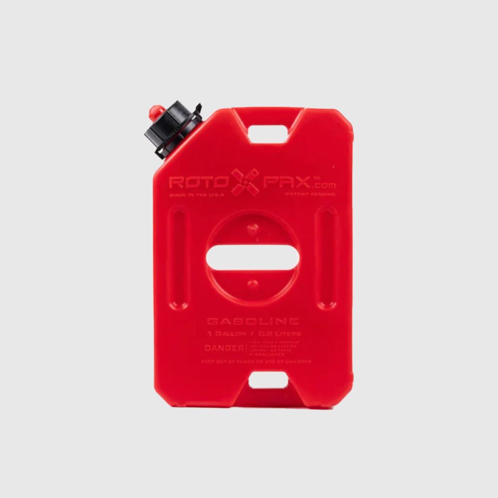 Los bidones Rotopax originales son conocidos en todas partes del mundo por su calidad y certificaciones, además de por su característico sistema de sujeción y su diferenciación de colores, siendo los bidones rojos para bencina/gasolina, los amarillos para Diesel y los de color blanco para agua.
