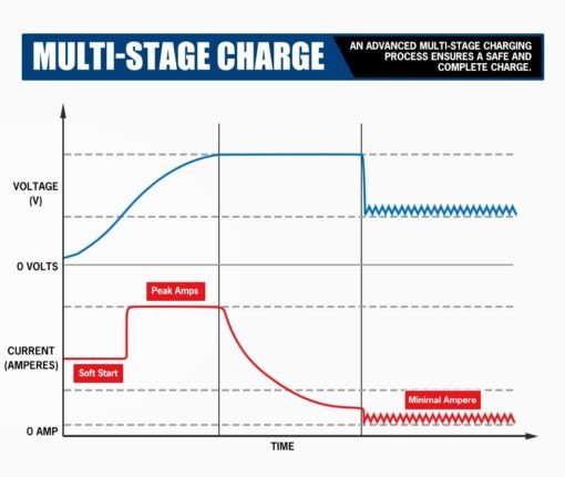 • Compatible con alternador inteligente: el cable ACC se puede conectar al encendido para ajustar el corte de voltaje, lo cual es adecuado para vehículos modernos, remolques y caravanas.
