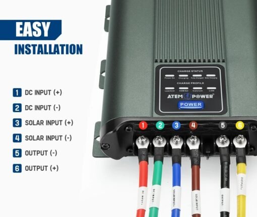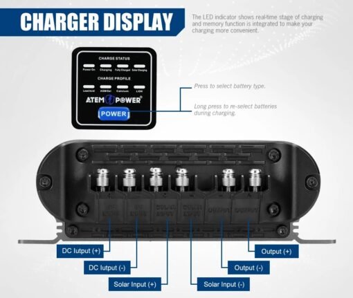 • Selección de batería múltiple: este cargador de CC a CC de ATEM POWER es compatible con baterías de plomo ácido, AGM, gel, calcio, LiFePO4.