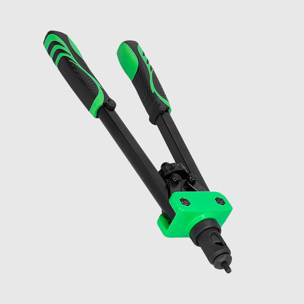 Kit de remachadora de palanca para tuercas utilizado para instalar hilo en la caja de camionetas pick up en las que se necesita perforar para instalar un rack de pickup. Incluye tuercas de remache: M-3, M-4, M-5, M-6, M-8, M-10, siendo la última la utilizada por nuestros instaladores. Color puede variar. Origen Chino.