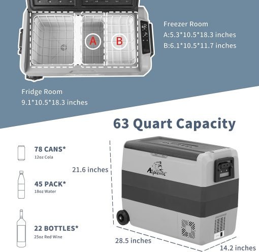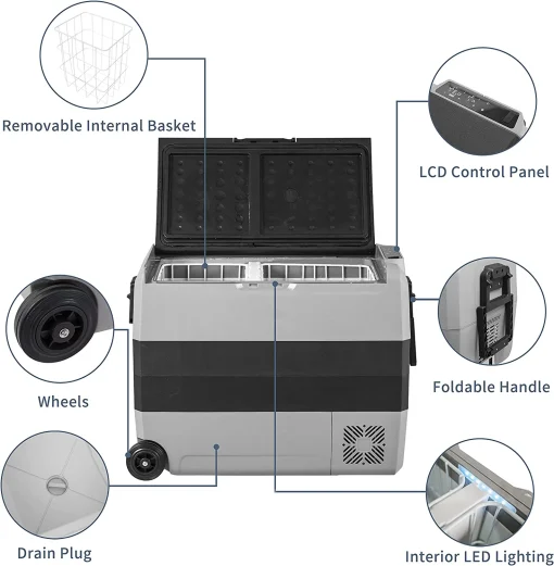 El refrigerador T60 es una solución versátil y eficiente para mantener tus alimentos y bebidas a la temperatura ideal. Con una capacidad de 60 litros y dimensiones de 73 x 36 x 55 cm, este dispositivo cuenta con un diseño de bi zona que permite un control independiente de la temperatura, alcanzando hasta -20° C. Su voltaje es compatible con 12, 24, 110 y 220 V, y su consumo es de solo 3 Ah en 12 V, lo que lo convierte en una opción energética eficiente. Además, incluye un adaptador de 110/220 a 12 V y un puerto USB para mayor comodidad. La app Bluetooth permite controlar la temperatura y otras funciones desde tu dispositivo móvil, facilitando su uso en cualquier situación. Ideal para viajes, camping o uso doméstico, el Alpicool T60 es el compañero perfecto para mantener tus productos frescos y congelados.