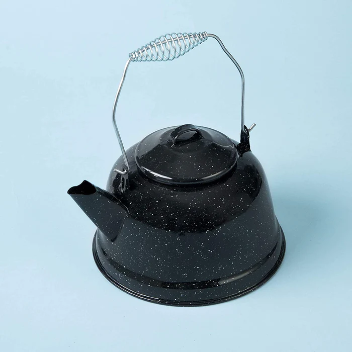 Tetera enlozada, su material elimina todas las bacterias y virus del agua.